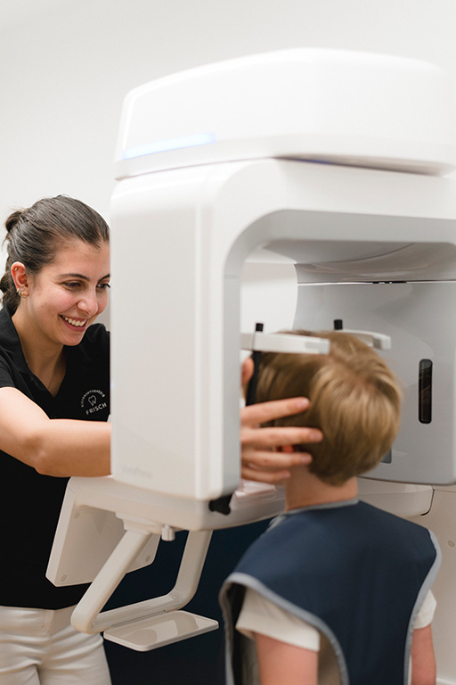 Bei der Befundaufnahme werden die Kiefer gescannt, Fotos und Röntgenbilder angefertigt und eine funktionelle Kiefergelenksdiagnostik durchgeführt. Durch das Scannen der Kiefer wird eine Abdrucknahme, die den Würgereflex auslösen kann überflüssig. Der Einsatz eines digitalen Röntgengerätes ermöglicht im Gegensatz zur herkömmlichen Technik eine deutlich reduzierte Strahlenbelastung.