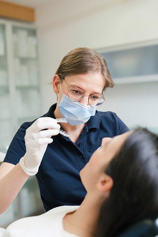 "Bei jedem Therapieansatz verfolge ich einen ganzheitlichen Ansatz. Dabei wird das Zusammenspiel der Zähne und Kiefer mit dem Kiefergelenk, den Atemwegen, der Haltung, der Zunge sowie die Gesichtsharmonie betrachtet."